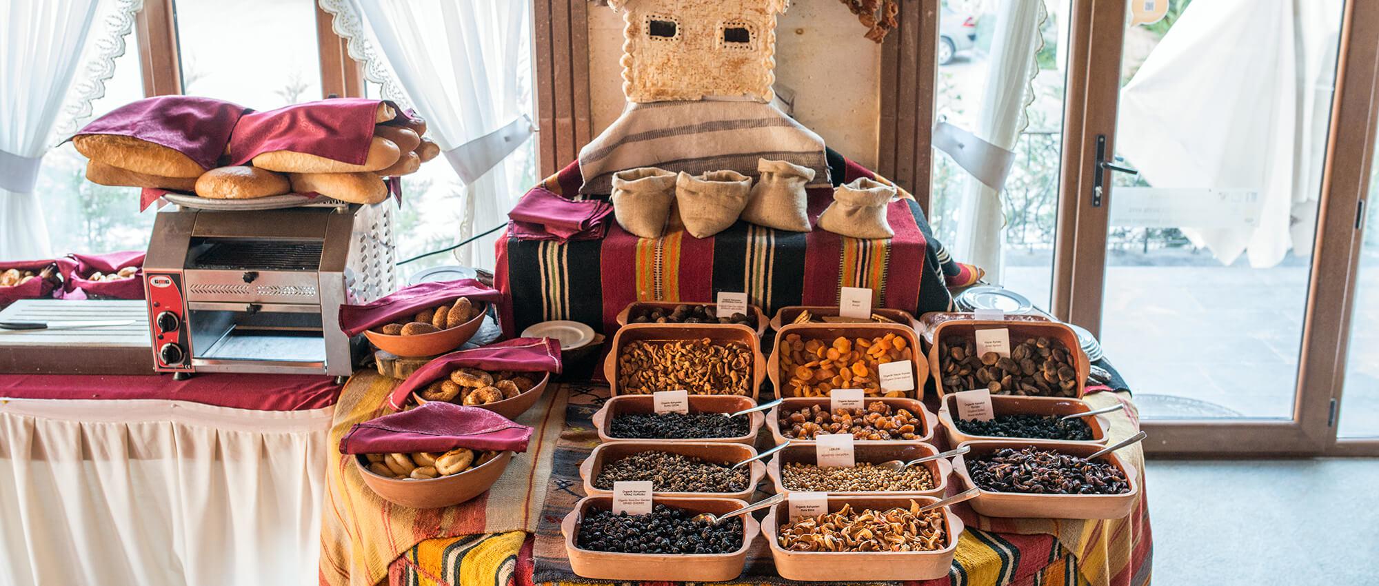 Restaurant serves delicious local cuisine, with a stunning dining area with a wonderful view over the dinner meal. The food we serve turns into wonderful tastes with local products and flavors and is served with a wide range of Cappadocian wines.