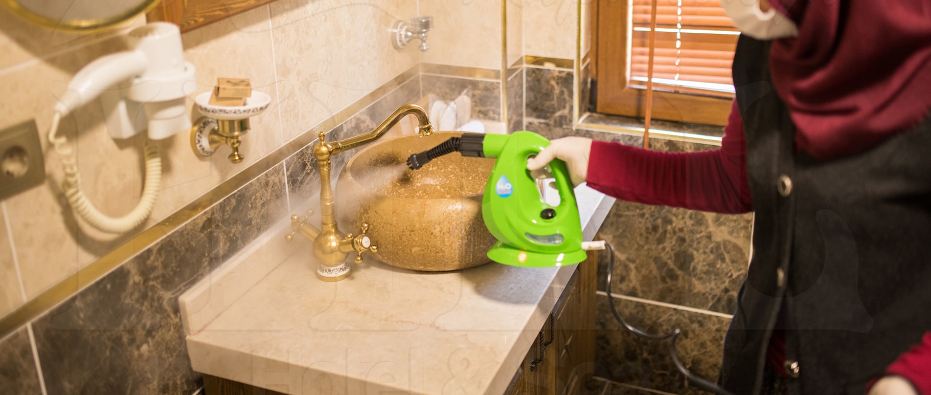 We have added 3 new features to our cleaning system with the developing World and the early detection importance we received. 100% effective against bacteria and virus in beds and sitting groups with Motor Brushed Ultraviolet Vacuum Cleaner Machine. 100% reliable cleaning in areas such as Room, Bathroom, Elevator, Spa center, Restaurant, General areas, Beauty center, Fitness center where your hand touches with hand steam disinfection. The cleaning method we use in the rooms is now done with steam cleaner machines. Cleaning of floors and carpets are more disinfected with more stablilize cleanig funciton.
