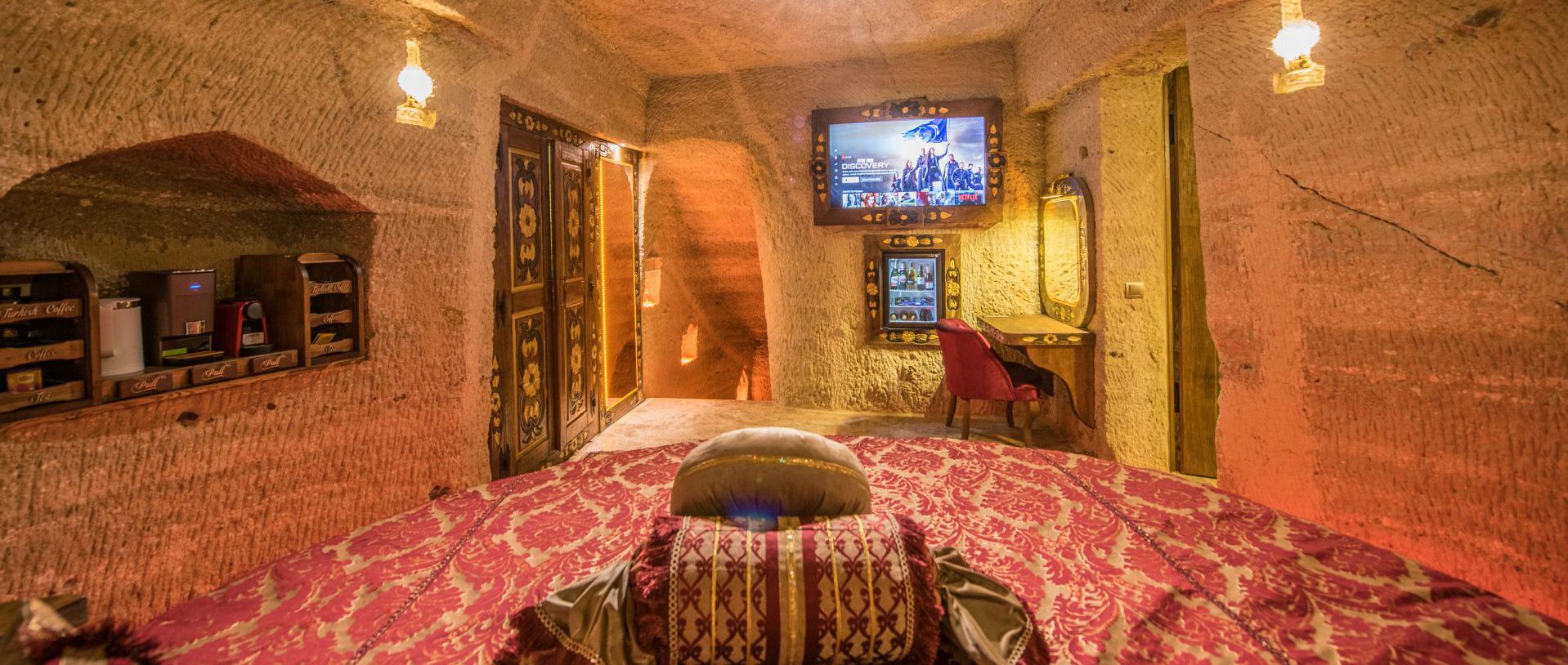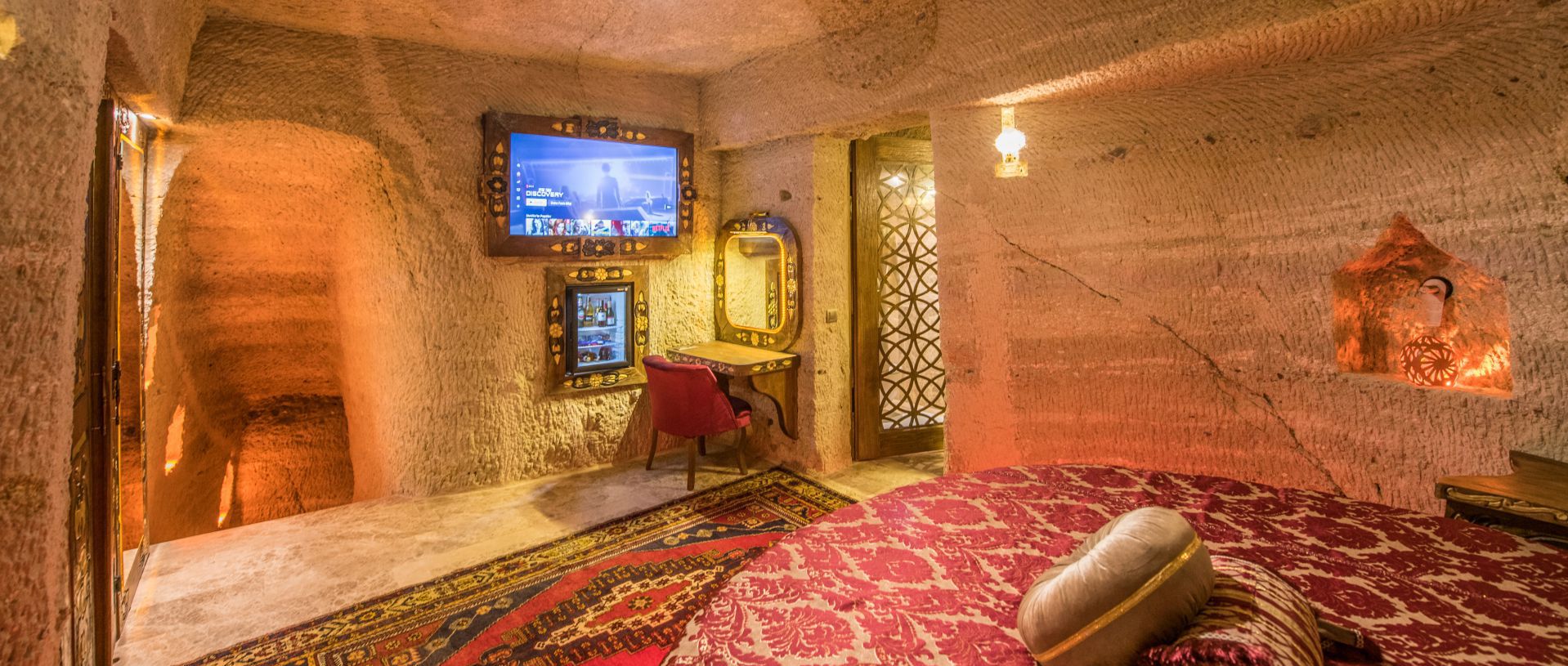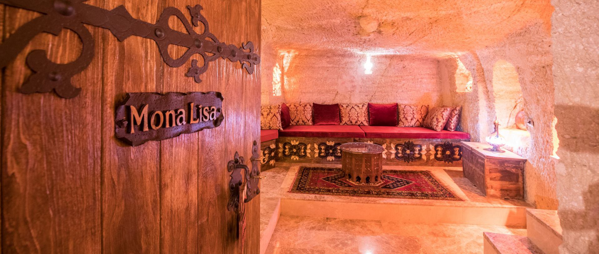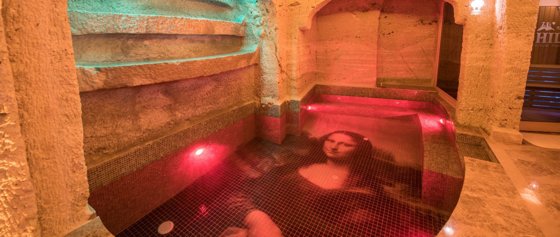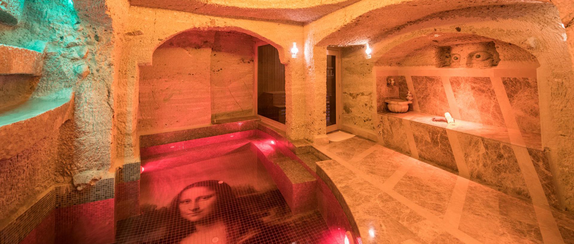 Welcome to the 8th wonder of the world. Witness The history yourself ! Mona Lisa is is duplex cave room. This fully 100sqm2 cave suite have 23 sqm2 34 ton water heated private pool and waterfall in the room. This room located 15 meters below the ground.This special luxury suite have seprate long seating area on ground floor and upper floor bedroom The room includes a fireplace, hand-made 2.50 meter round bed, a private sauna, a Turkish bath, a rainforest shower, Nespresso capsule coffee machine, Turkish capsule coffee machine , Bluetooth enabled Kettle. You can increase your in-room entertainment level with 4K defination of 50 inch TV includes Netflix, Youtube, Apple TV and Amazon Prime. You can experience luxury at the highest level with Bvlgari brand bath toiletries and L’occitane brand amenities.